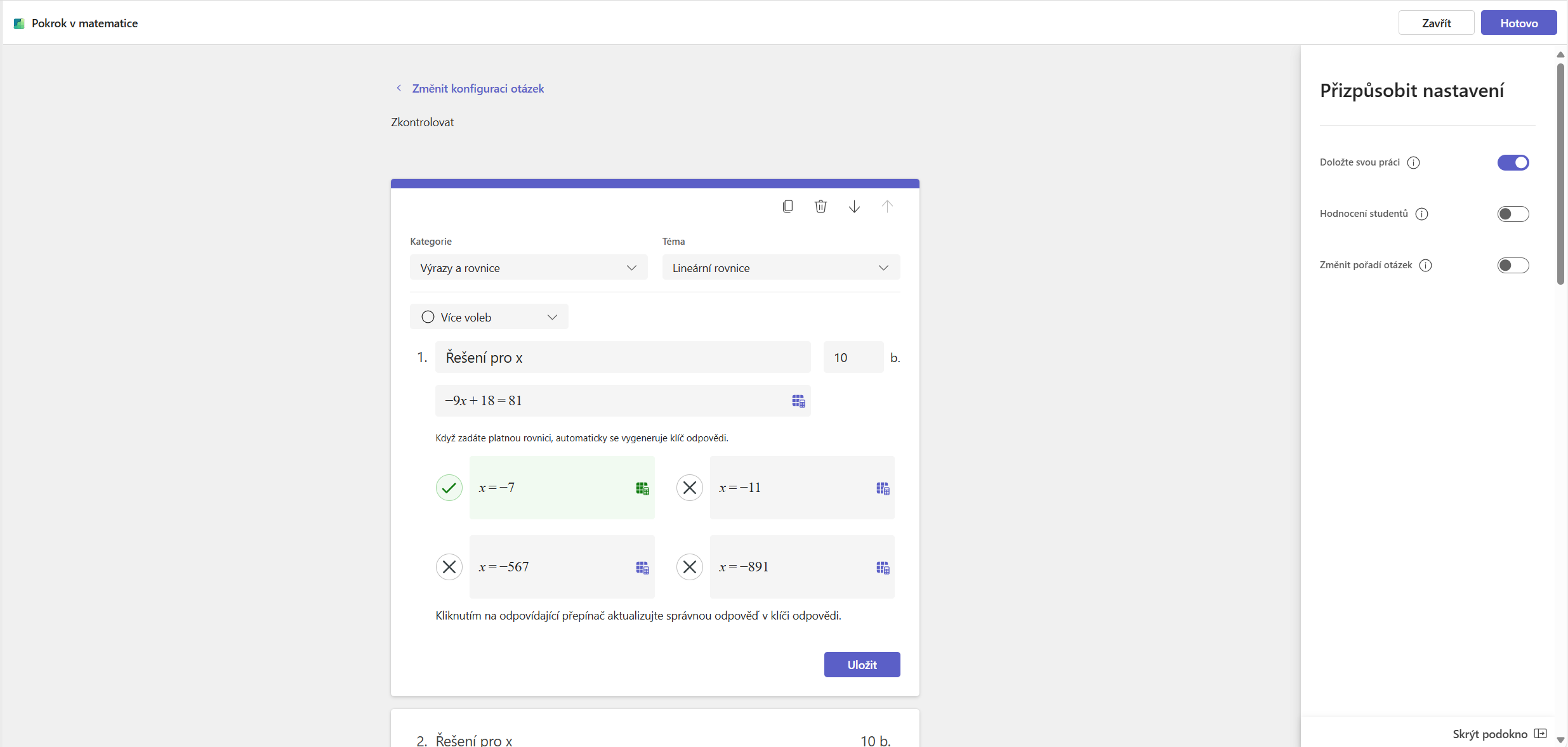 Jak bylo zmíněno, vybrané příklady určitě nejsou neměnné, protože v dalším kroku máte možnost si vše detailně upravit a přizpůsobit nastavení, zejména co se nahrání postupu výpočtu týče. Následně pak jen stačí zadání odeslat celé třídě.