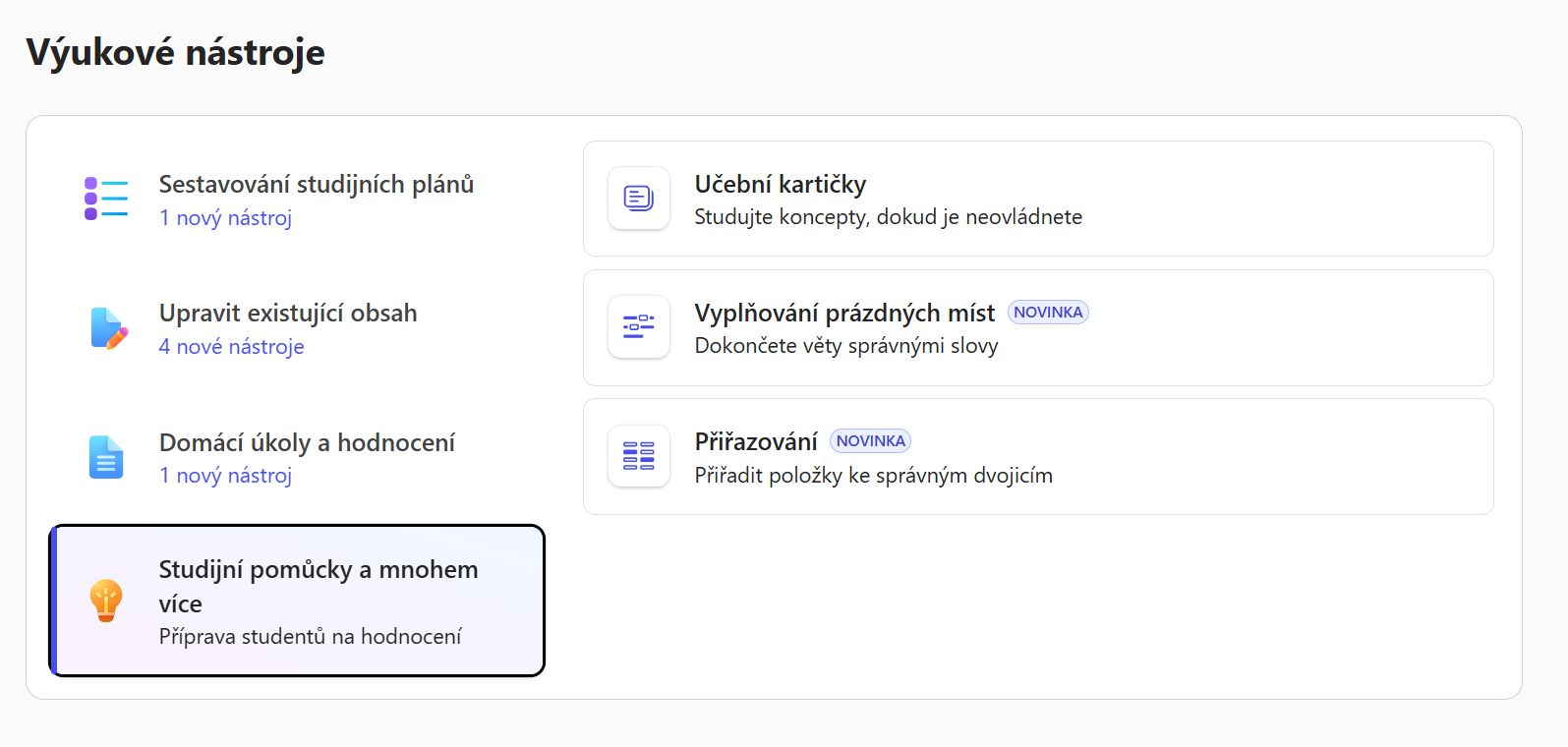 Zajímavou volbou je určitě i možnost si vybrat, jaký typ učební kartičky chcete