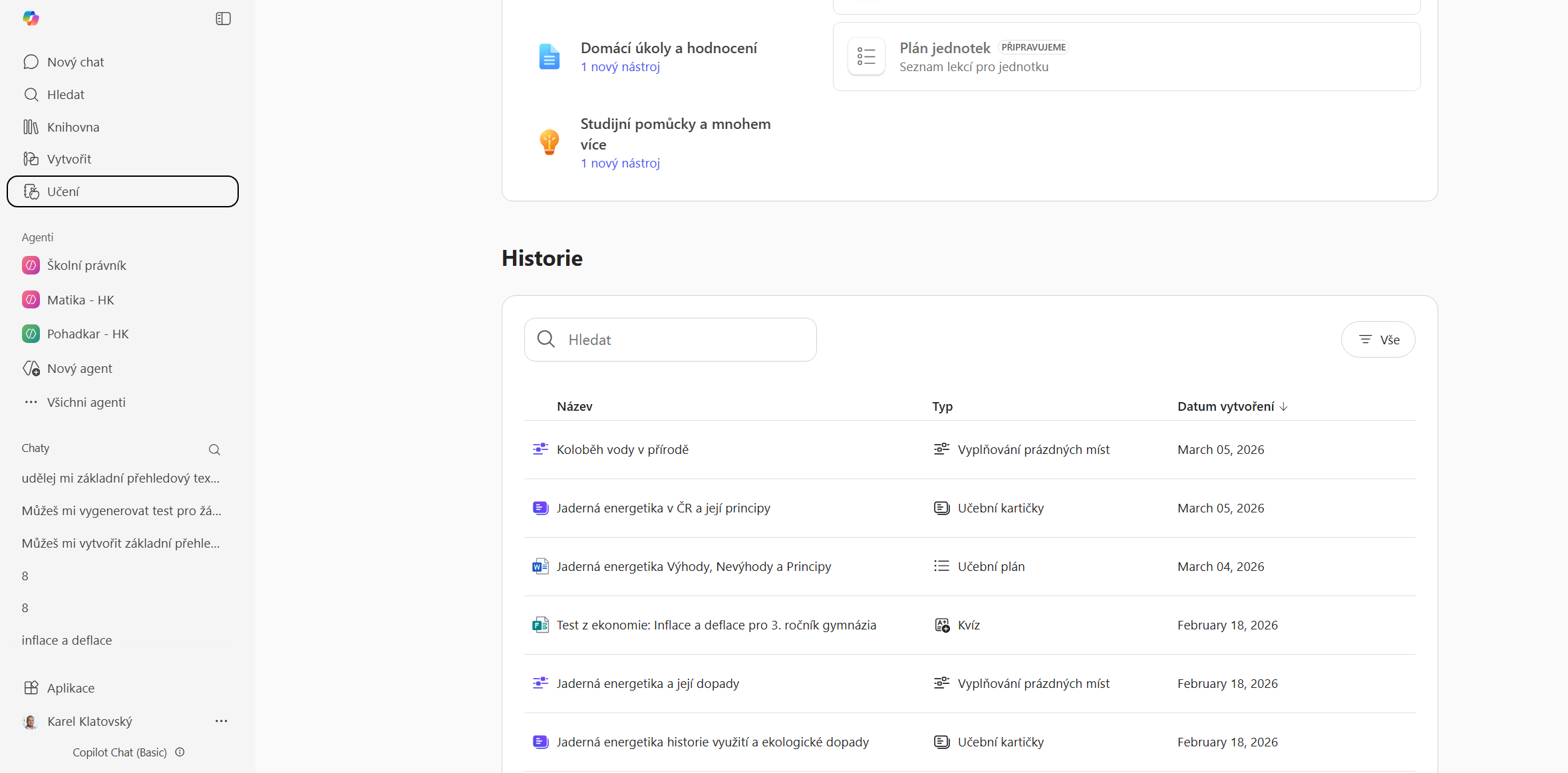 Po jejich uložení se vám zobrazí všechny takto vytvořené aktivity přímo v modulu Učení.
