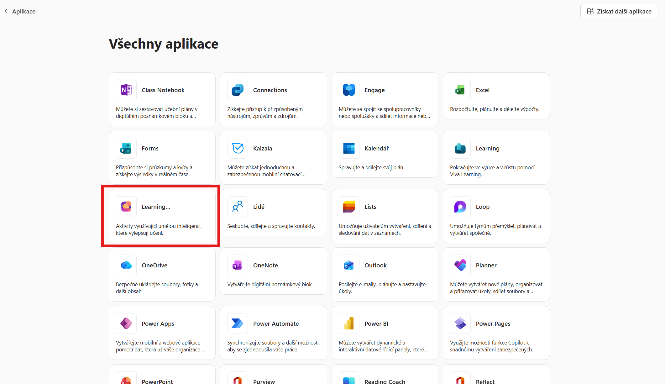 rychle otevřít. Další možností je otevřít si web learningactivities.edu.cloud.microsoft